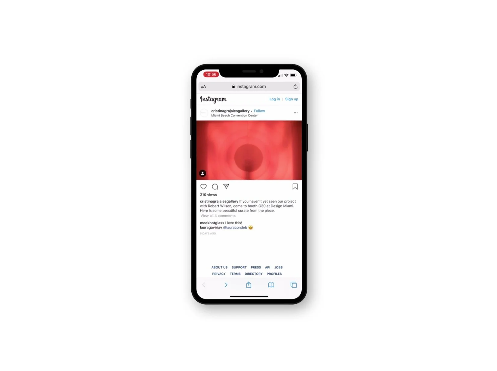 To garner as much attention as possible before the exhibition opening it was of utmost importance to promote the exhibit in Cultured Magazine’s Winter Issue along with paid posts on Cultured’s Instagram account. Social media posts promoting the exhibit are also to be released in accordance to brand guidelines on Cristina Grajales Gallery, Paula Cooper Gallery and Robert Wilson’s channels. A full two page spread featured in Cultured Magazine’s winter issue is rarely seen for an exhibition campaign, however the work called for it.